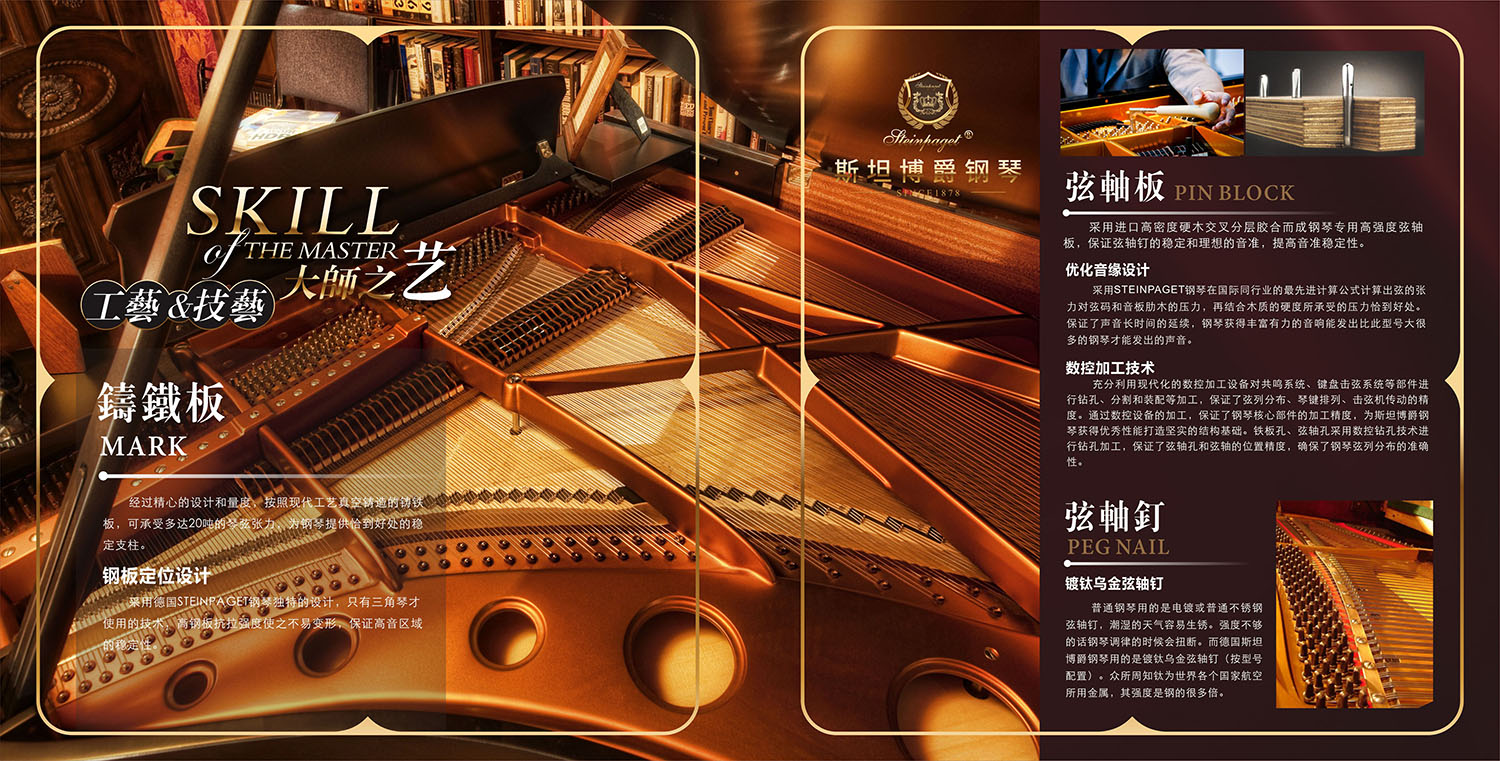 斯坦博爵是一家專注于STEINPAGET立式鋼琴與三角鋼琴的研發、生產與銷售的公司。我們巧妙融合先進的德國制琴工藝與獨特鋼琴設計,致力于打造卓越品質。我們以三大核心價值為基石:經營理念追求“高效 · 品牌 · 服務”,產品理念恪守“傳承 · 創新 · 品質”,服務宗旨奉行“客戶需求即工作,客戶要求即追求。為鑄就非凡品質,我們全方位投入:引進德國、美國、日本尖端設備與優質制琴材料;特邀德國頂級設計師及美國專家顧問傾情指導,傳承歐洲經典工藝與純正德國精髓;斥資打造恒溫恒濕生產車間及成品鋼琴靜置倉,確保全球任何氣候下STEINPAGET鋼琴音質純美、演奏性能始終如一;并在中國構建完善售后服務體系,提供國際水準的真誠服務。
